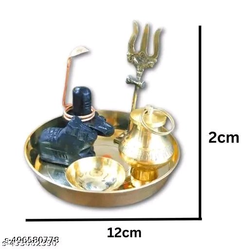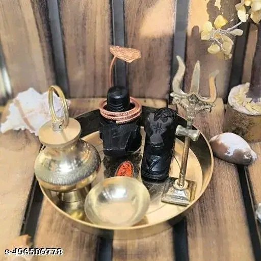Name: ELITETOUCH Black Marble Shivling with tastaa or trishul Brass Heavy Thali, tipai lota set Temple Home puja Set for shivling nandi tipai lota set nandi ji copper naag shes naag shiva set, shiv kit, shivling sheshnaag with trishul stand,Shiv Shiva Lingam