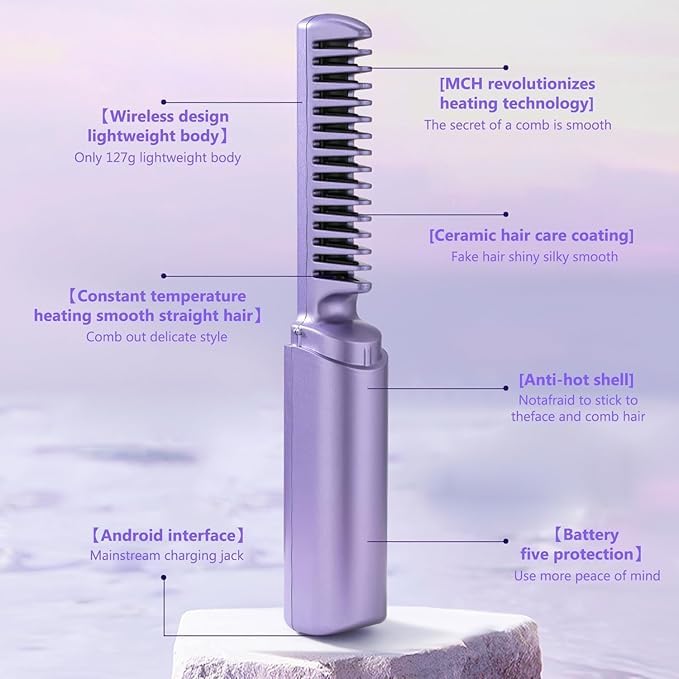 Wireless and Rechargeable: This hair straightener comb is wireless and rechargeable, offering convenience and portability.