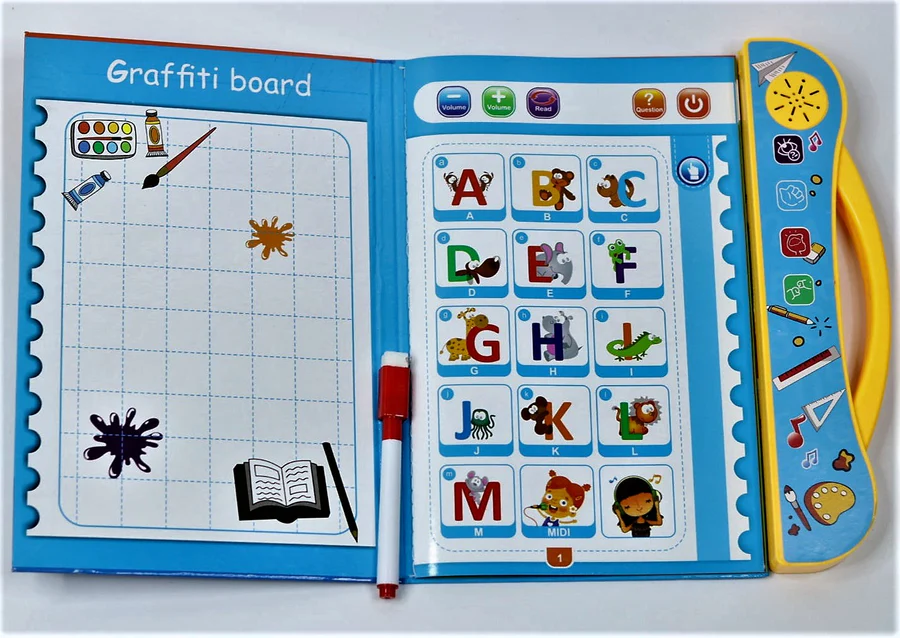 📚Colorful audio interactive learning book: this book has multiple modes to help children learn alphabets and spellings. Every page has a button please press the switch first to start the page. As a child presses the image on the book, the sound of the alphabet, the word and spelling are played.