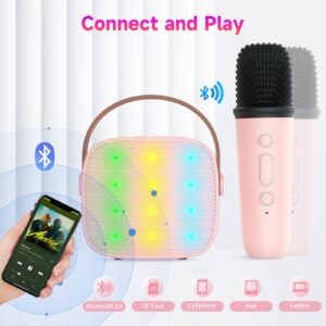 - 【Small Body,Powerful Sound】The mini karaoke machine has powerful and clear sound,our speakers will provide you with deep bass and crisp treble, with dual speakers, strong three-dimensional effect and has the feature of LED light,Fill the atmosphere of singing